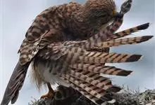 红隼:是隼科、隼属的小型猛禽之一。体重173-335克,体长305-360毫米。翅狭长而尖,尾亦较长,外形和共同爪隼非常相似。雄鸟头蓝灰色,背和翅上覆羽砖红色,具三角形黑斑;腰、尾上覆羽和尾羽蓝灰色,…全部>>