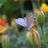 曲纹紫灰蝶是鳞翅目灰蝶科昆虫。成虫体长10-12毫米,翅展20-35毫米,翅面紫蓝色,前翅外缘黑色,后翅外缘有细的黑白边。翅反面灰褐色,缘毛褐色,两翅均具黑边。后翅有2条带内侧有新月纹白边,…全部>>
