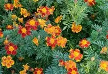 万寿菊是菊科万寿菊属一年生草本植物,别名孔雀菊、缎子花、臭菊花、西番菊、红黄草、小万寿菊、臭芙蓉、孔雀草。万寿菊茎近基部分枝。叶羽状分裂,长5-10厘米,宽4-8厘米,裂片长椭圆形或披针形,具锐齿,…全部>>