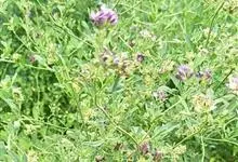紫苜蓿,豆科苜蓿属多年生宿根草本植物,茎直立、丛生或匍匐,呈四棱形,多分枝;托叶较大,卵状披针形,小叶片呈倒卵状长圆形;花朵是成族状的总状花序;花梗呈尊钟状,花冠紫色花;果实螺旋形,…全部>>