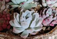 芙蓉雪莲是景天科拟石莲花属的植物。由于叶片表面覆盖着一层厚霜粉,通常呈现出白色;日照增多,温差增大后叶缘、叶尖会呈现出粉红色或橙红色。…全部>>