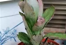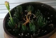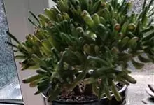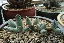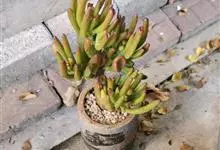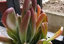 筒叶花月,是景天科青锁龙属的多年生草本植物。植株多分株,灌木状,茎较粗壮,圆柱形,表皮灰褐色;叶片肉质,互生,呈圆筒状,簇生于茎或分枝顶端,叶端呈斜截形,截面为椭圆形;花呈星状,淡白色;花期秋季。…全部>>