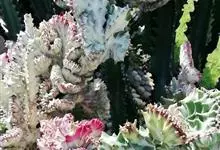 彩春峰是大戟科大戟属肉质植物,彩春峰的肉质茎依品种的不同有暗红色、乳白、淡黄及镶边、斑纹等复色。彩春峰的性状很不稳定,栽培中经常会发生色彩的变异,如暗紫红色肉质茎会长出白色黄色斑块等。…全部>>