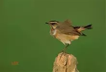 漠䳭是鹟科、䳭属小型鸟类,体长14-17厘米。雄鸟上体沙棕色,腰和尾上覆羽白色,两翅和尾黑色,尾基部白色,眼纹白色,眉纹以下整个脸和头侧以及颏、喉黑色,其余下体白色。雌鸟和雄鸟大致相似,但颏、喉白色,…全部>>