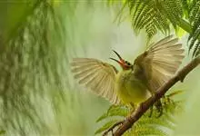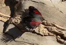 红翅旋壁雀:体重15-23克,体长120-178毫米。是一种体型略小的鸟类。尾短而嘴长,翼具醒目的绯红色斑纹。飞羽黑色,外侧尾羽羽端白色显著,初级飞羽两排白色点斑飞行时成带状。繁殖期雄鸟脸及喉黑色,…全部>>
