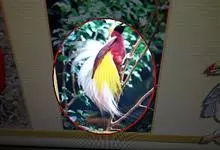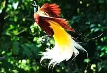大极乐鸟是极乐鸟属中最大的鸟种。成年雄鸟体长可达到43厘米,雌性可达35厘米。雄鸟的额、颊、喉等墨绿色;头、颈黄色;上体暗赤栗色;腹部葡萄红色,胁部有长饰羽,其基部橙黄,中部黄色,…全部>>