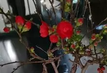 贴梗海棠 Nakai)是蔷薇科、木瓜海棠属植物。落叶灌木,高达2米,枝条直立开展,有刺。叶片卵形至椭圆形,稀长椭圆形,长3-9厘米,宽1.5-5厘米。花先叶开放,3-5朵簇生于二年生老枝上。…全部>>
