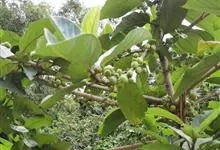 大果榕是桑科榕属的小乔木,株高可达10米;幼枝被柔毛;叶互生,宽卵状心形或近圆形;雄花无梗、匙形、花丝长,雌花生于雌株榕果内,子房白色;榕果簇生于树干基部或老茎短枝上、扁球形或陀螺形,…全部>>