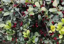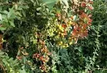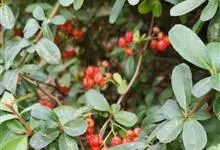 火棘 H. L. Li)是蔷薇科火棘属常绿灌木,老枝呈暗褐色;叶片呈倒卵形,边缘有钝锯齿,齿尖向内弯,两面皆无毛;叶柄短,无毛或嫩时有柔毛;花序是复伞房状,花瓣呈白色近圆形;果球近圆形,…全部>>