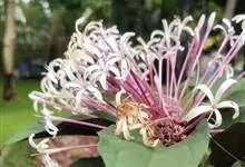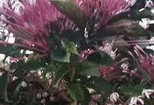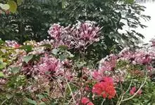 烟火树 Merr.)是唇形科、大青属常绿灌木或小乔木,株高可达4米。幼枝方形,墨绿色。叶对生,长椭圆形或披针形,先端尖,全缘或波状缘。纸质,叶背暗紫红色。聚伞状圆锥花序,顶生,小花多数,聚生成团,…全部>>