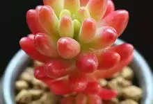 虹之玉是景天科景天属的多肉植物,多年生肉质草本植物。生长速度较快,叶片肉质,呈长椭圆形,约1厘米长,互生。花黄色,星形,秋冬季节或强光照下,叶片部分或全部转为鲜红色。生长适温10~28℃,…全部>>