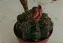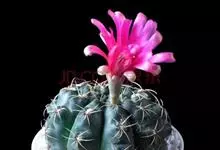 绯花玉 Speg.)是仙人掌科、裸萼球属多肉植物,植株呈扁球形,表皮墨绿色,刺针状,每个刺座有5枚灰色周刺,花生于球体顶端,夏季开花,花色有白、粉红、深红等。果实纺锤形,深灰绿色,种子黑色。…全部>>