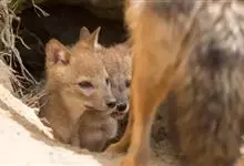 沙狐:体长50-60厘米,尾长25-35厘米,体重约2-3千克。比赤狐略小。是一种长腿,红灰色的狐狸。脸短而吻尖,耳大而尖,耳基宽阔。背部呈浅棕灰色或浅红褐色,底色为银色。下颏至胸腹部呈淡白色至黄色。…全部>>