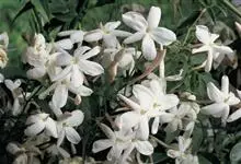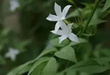 素馨花,木犀科素馨属多年生的攀援灌木植物。攀援灌木,小枝圆柱形,具棱或沟;叶对生,叶轴常具窄翼,小叶片卵形或长卵形;聚伞花序顶生或腋生,花序梗长,苞片线形,花萼无毛,裂片锥状线形,花冠白色,…全部>>