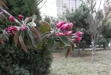 花红,是一种蔷薇科、苹果属植物,落叶小乔木,叶卵形或椭圆形,花粉红色。老枝暗紫褐色,无毛,有稀疏浅色皮孔;冬芽卵形,先端急尖,初时密被柔毛,逐渐脱落,灰红色。果实球形,黄绿色带微红,果皮脆而韧,…全部>>