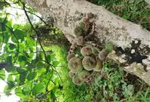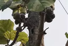 大果榕是桑科榕属的小乔木,株高可达10米;幼枝被柔毛;叶互生,宽卵状心形或近圆形;雄花无梗、匙形、花丝长,雌花生于雌株榕果内,子房白色;榕果簇生于树干基部或老茎短枝上、扁球形或陀螺形,…全部>>