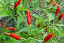 五色椒又名朝天椒,五彩辣椒,为辣椒 变种,味涩。属茄科多年生半木质性植物,常作一年生栽培;江苏沭阳一带有不少花农种植,其株高30厘米—60厘米,分枝多、茎直立,单叶互生;花白色,开花期5月初—7月…全部>>