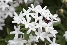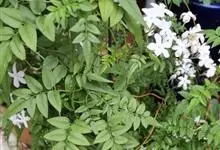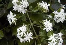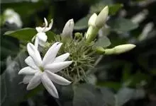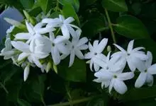 素馨花,木犀科素馨属多年生的攀援灌木植物。攀援灌木,小枝圆柱形,具棱或沟;叶对生,叶轴常具窄翼,小叶片卵形或长卵形;聚伞花序顶生或腋生,花序梗长,苞片线形,花萼无毛,裂片锥状线形,花冠白色,…全部>>