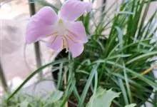 小韭兰学名韭菜莲又名风雨花、菖蒲莲、红玉帘和旱水仙,多年生草本,鳞茎卵球形,基生叶常数枚簇生,线形,扁平,花单生于花茎顶端,下有佛焰苞状总苞,花玫瑰红色或粉红色,蒴果近球形,种子黑色,花期夏秋。韭莲…全部>>