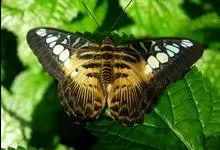 金凤蝶,是鳞翅目凤蝶科凤蝶属动物。金凤蝶为中型凤蝶,翅展70-84毫米,翅背面底色黑褐色,翅脉黑色,翅室具黄斑;前翅背面基部呈暗黄色,亚外缘为黑色,内具一列小黄斑;后翅背面亚外缘区具黑宽边,…全部>>