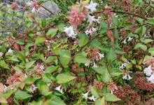 大花六道木,忍冬科六道木属半常绿矮生灌木。其幼枝为红褐色,有短柔毛;叶片倒卵形为墨绿色,有光泽;花粉钟形为白色;圆锥花序,开花繁茂;花期长,5~11月持续开花。…全部>>