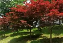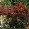 红枫,园艺种,槭树科槭属落叶小乔木,高5~8 m;树冠伞形,枝条开张,细弱。单叶对生,近圆形,薄纸质,掌状7~9深裂,裂深常为全叶片的1/2~1/3,基部心形,裂片卵状长椭圆形至披针形,先端尖,…全部>>