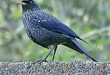 紫啸鸫是雀形目鹟科啸鸫属鸟类,又称黑雀儿,山鸣鸡、乌精。成鸟眼先及颏绒黑色;前额、头顶至背及肩羽和颈侧呈深紫蓝色,羽端具较密集的亮蓝色点斑;腰至尾上覆羽的深紫蓝色较暗而杂黑褐色,…全部>>