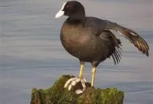 白骨顶是鹤形目秧鸡科骨顶属鸟类,又称骨顶鸡、凫翁。成鸟体羽灰黑色,头颈部尤深,内侧飞羽具白色羽缘,形成白色翼斑,飞行时可见;翼外缘和胸腹部略沾白色;虹膜红褐色,喙和额部的甲板为纯白色,…全部>>