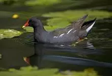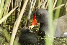 黑水鸡:是鹤形目、秧鸡科的鸟类,共有12个亚种。中型涉禽,体长24-35厘米。嘴长度适中,鼻孔狭长;头具额甲,后缘圆钝;嘴和额甲色彩鲜艳。翅圆形,第2枚初级飞羽最长,或第2枚和第3枚初级飞羽等长,…全部>>