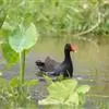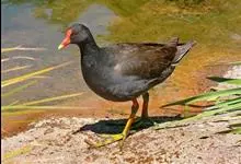 黑水鸡:是鹤形目、秧鸡科的鸟类,共有12个亚种。中型涉禽,体长24-35厘米。嘴长度适中,鼻孔狭长;头具额甲,后缘圆钝;嘴和额甲色彩鲜艳。翅圆形,第2枚初级飞羽最长,或第2枚和第3枚初级飞羽等长,…全部>>
