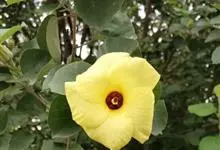 海滨木槿是锦葵科木槿属植物,落叶小乔木,株高3-5米,胸径20厘米,扁球形树冠,枝叶繁盛。厚纸质单叶互生,扁圆形、倒卵形或宽倒卵形,先端钝近平,具短突尖,基部圆形或浅心形,叶缘中上部具细圆齿,…全部>>