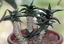 条纹十二卷 Haw.)是芦荟科十二卷属植物,为多年生肉质草本植物。植株高度10-15厘米,其呈莲座状生长;叶片紧密轮生在茎轴上,柔软多汁,呈长三角状披针形,极肥厚;叶面光滑、扁平,色深绿;叶背突起,…全部>>