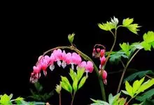 荷包牡丹 Fukuhara),是罂粟科荷包牡丹属的多年生草本植物,株高30-60厘米,具肉质根状茎;茎直立呈圆柱形;叶二回三出全裂,状似牡丹叶;总状花序顶生,基部为心形,花瓣紫红色至粉红色,稀白色,…全部>>