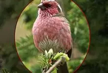藏朱雀:全长约17-18厘米。雄鸟头部深红色具光辉,喉部暗红色具白色点斑;背部灰白色,各羽具玫瑰红色羽端,形成许多斑纹;腰部淡玫瑰红色;翅暗褐色,沾灰白,羽端沾玫瑰红或灰白色;尾暗棕色,端缘玫瑰红色…全部>>
