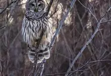 灰林鸮是鸱鸮科、林鸮属鸟类。体长约40厘米;头大而圆,没有耳羽,面盘明显,橙棕色或黑褐色;上体暗灰色,呈棕、褐斑杂状;飞羽暗褐,外侧翅上夏羽的外翈棕白色,在翅上形成显著的棕白色翅斑;下体白或皮黄色,…全部>>
