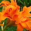 金娃娃萱草:是萱草的人工栽培的园艺品种。地下具根状茎和肉质肥大的纺锤状块根。叶基生,条形,排成两列,长约25厘米,宽1厘米。株高30厘米,花莛粗壮,高约35厘米。螺旋状聚伞花序,花7至10朵。…全部>>