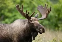 驼鹿:鹿科、驼鹿属动物。体长200-260厘米,肩高160-240厘米,体重400-700千克。肩部特别高耸,则又像骆驼背部的驼峰,因此得名。以雄性的掌形鹿角为特征。驼鹿共有8个亚种,…全部>>