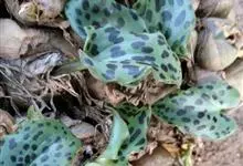 油点百合属于百合科的多年生草本植物,别称是豹纹红宝。原产于南非。株高约10-15公分,紫红色的茎肥大呈酒瓶状,茎顶着生3-5片肉质叶子,叶银绿色并具有不规则的斑点,叶背紫红色。花期春夏季,圆锥花序,…全部>>