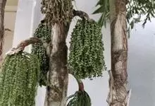 鱼尾葵,棕榈科鱼尾葵属植物。鱼尾葵幼叶近革质,老叶厚革质;羽片互生,罕见顶部的近对生,最上部的羽片大,呈樱形,侧边的羽片小,菱形似鱼尾。外缘笔直,花聚生3朵,花瓣黄色;萼片宽圆形;花药线形,黄色,…全部>>