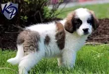 圣伯纳犬,别名巴里汉德,属于大型工作犬,肩高约65~90厘米,体重约50~90千克。圣伯纳犬身体强壮,被毛红褐色和白色相间,头圆而宽大。颈部强壮,胸宽深,背直。前肢长直,腕关节略前倾,后肢腿骨粗壮,…全部>>