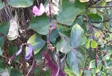 扁豆 Sweet)是豆科扁豆属多年生缠绕藤本植物,又名鹊豆、沿篱豆、藤豆等。全株几无毛,茎长可达6米。羽状复叶具3小叶;托叶基着,叶片披针形;小托叶线形,小叶宽三角状卵形,宽与长相等,…全部>>