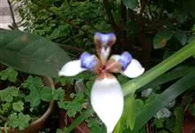 巴西鸢尾 Sprague)是鸢尾科、巴西鸢尾属多年生草本植物。株高40-50厘米。叶从基部根茎处抽出,呈扇形排列,叶片2列,叶宽约2厘米,带状剑形,革质,深绿色。花从花茎顶端鞘状苞片内开出,…全部>>