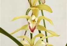 碧玉兰 Rchb. f.)是兰科兰属附生植物。假鳞茎窄椭圆形,略扁;叶带形,先端短渐尖;苞片卵状三角形,无香气,萼片和花瓣绿色或黄色,有红褐色纵脉,唇瓣淡黄色,中裂片有深红色锚形或V形斑密生细毛,…全部>>
