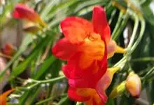雄黄兰是鸢尾科雄黄兰属多年生草本植物。雄黄兰具扁球径,叶多基生,剑形;花茎由多花给成疏散的穗状花序,花冠漏斗状,深橙红色;蒴果。 花期7-8月,果期8-10月 。雄黄兰因橘红色的花与雄黄颜色相似而得名。…全部>>
