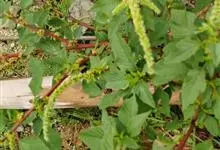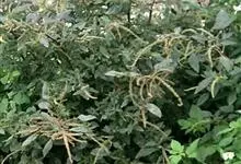 反枝苋是苋科苋属的一年生草本植物。株高达1米;茎密被柔毛;叶菱状卵形或椭圆状卵形,先端锐尖或尖凹,两面及边缘被柔毛,下面毛较密;穗状圆锥花序,顶生花穗较侧生者长;花被片长圆形或长圆状倒卵形,…全部>>