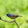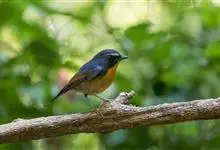 棕胸蓝姬鹟:属小型鸣禽,体长10-13厘米,体重6-10克,是一种体型很小的灰蓝及棕色鹟,雌雄羽色不同,雄鸟羽色艳丽,雌鸟羽色暗淡。雄鸟上体深蓝色,胸橙黄色,下腹灰白色。亚成鸟具褐色斑驳。…全部>>