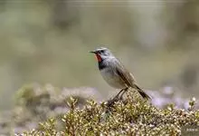 黑胸歌鸲是鹟科、歌鸲属小型鸟类,体长13-16厘米。上体石板灰褐色或橄榄褐色,头和颈侧黑色,眉纹和颧纹白色,在暗色的头部极为醒目。两翅和尾黑褐色,外侧尾羽具白色端斑。下体颏、喉雄鸟深红色,雌鸟白色。…全部>>