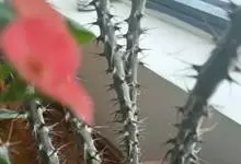 虎刺梅:别称铁海棠,是蔓生灌木植物。茎多分枝,长60-100厘米,直径5-10毫米,具纵棱,密生硬而尖的锥状刺,刺长1-1.5厘米,直径0.5-1.0 毫米,常呈3-5列排列于棱脊上,呈旋转。叶互生…全部>>