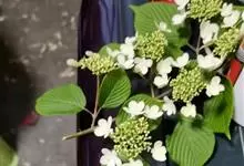 蝴蝶戏珠花 Miq.)是荚蒾科荚蒾属植物。落叶灌木,高达3米;当年小枝浅黄褐色。叶较狭,宽卵形或矩圆状卵形,有时椭圆状倒卵形。花序直径4-10厘米,外围有4-6朵白色、木型的不孕花。果实先红色后变黑色,…全部>>