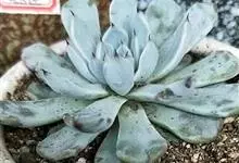 蓝石莲是景天科、拟石莲花属的多肉植物。茎部粗壮,成熟植株茎部木质化。叶片莲座型密集排列,株径不会很大,叶片相对较薄,常年绿色,表面布有白色粉末,中部凹陷,呈倒水滴状。叶尖较尖,叶缘光滑无褶皱,…全部>>